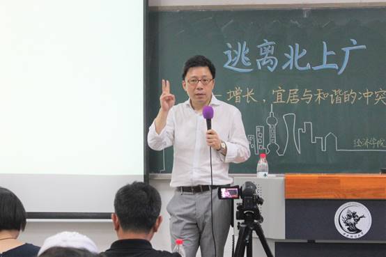 2018年6月10日晚上,上海交通大学陆铭教授应邀做客“经济学院名家讲座”,带来了主题为“‘逃离北上广?’增长,宜居与和谐的冲突”的讲座,为经济学院师生带来了学术和思想的盛筵。本次讲座由经济学院院长陈斌开主持,经济学院师生参与积极,现场反响非常热烈。